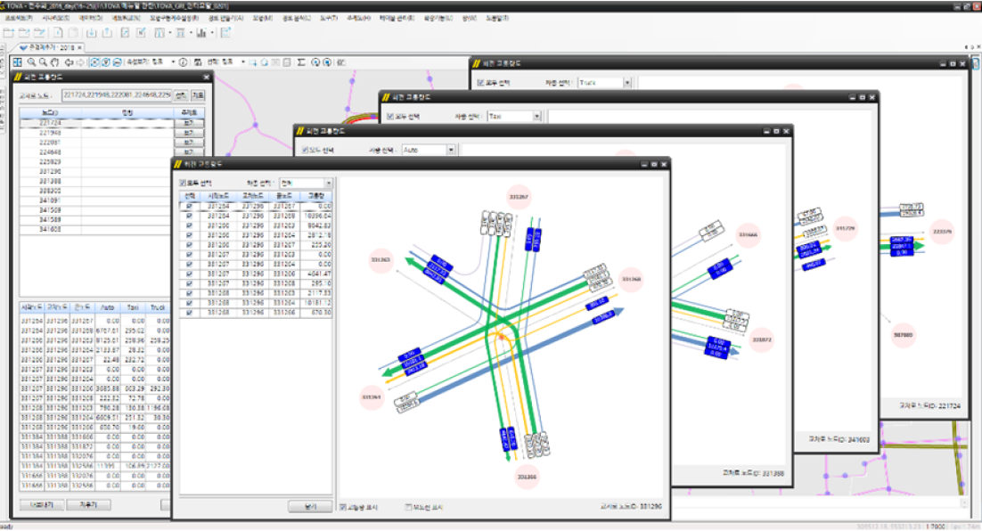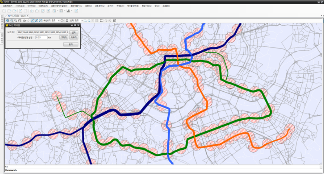 TOVA는 사용자의 편의성과 효율성을 높이기 위해 다양한 기능을 제공합니다. 기본적인 네트워크 편집 및 주제도 표출 기능 외에도, 한국적 자료 특성과 분석 요구 조건을 고려한 다양한 기능을 갖추고 있습니다. 다양한 기능들을 통해 효율적인 교통 네트워크 관리, 대중교통 분석, 데이터 처리 및 분석 솔루션을 기대할 수 있습니다.